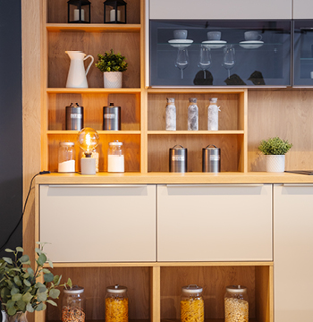 Ihre DAN-Küche verschenkt keinen Platz! Denn bei uns wird auch der Küchensockel als Stauraum genützt – mit SOCKELAUSZÜGEN FÜR 15% MEHR PLATZ in der Küche.