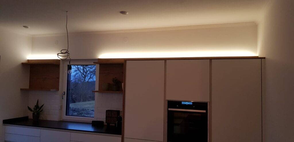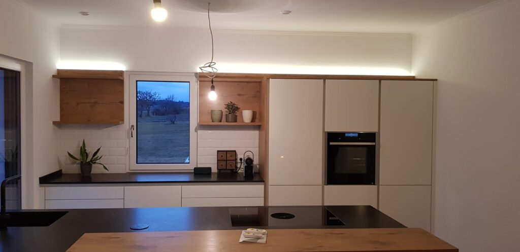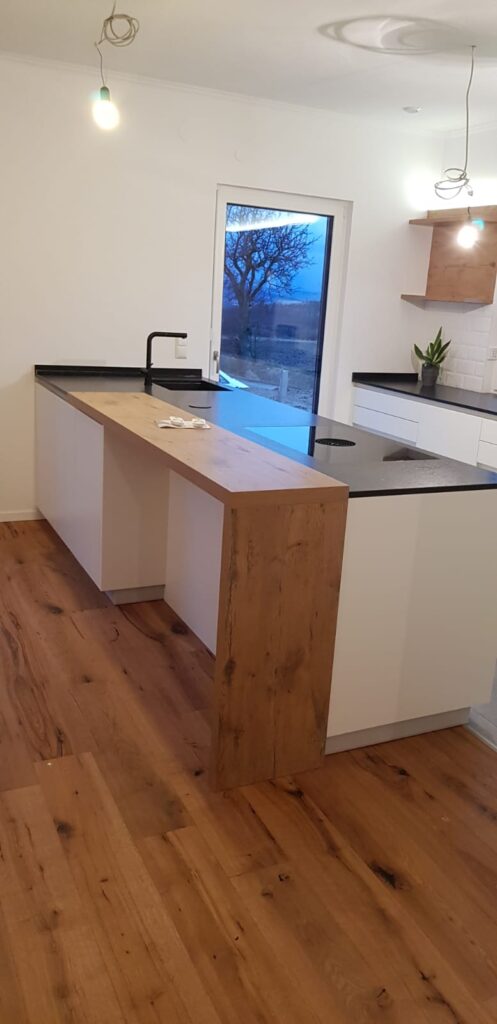Die Frontfarbe Polarweiß in Kombination mit Burguesa Eiche.