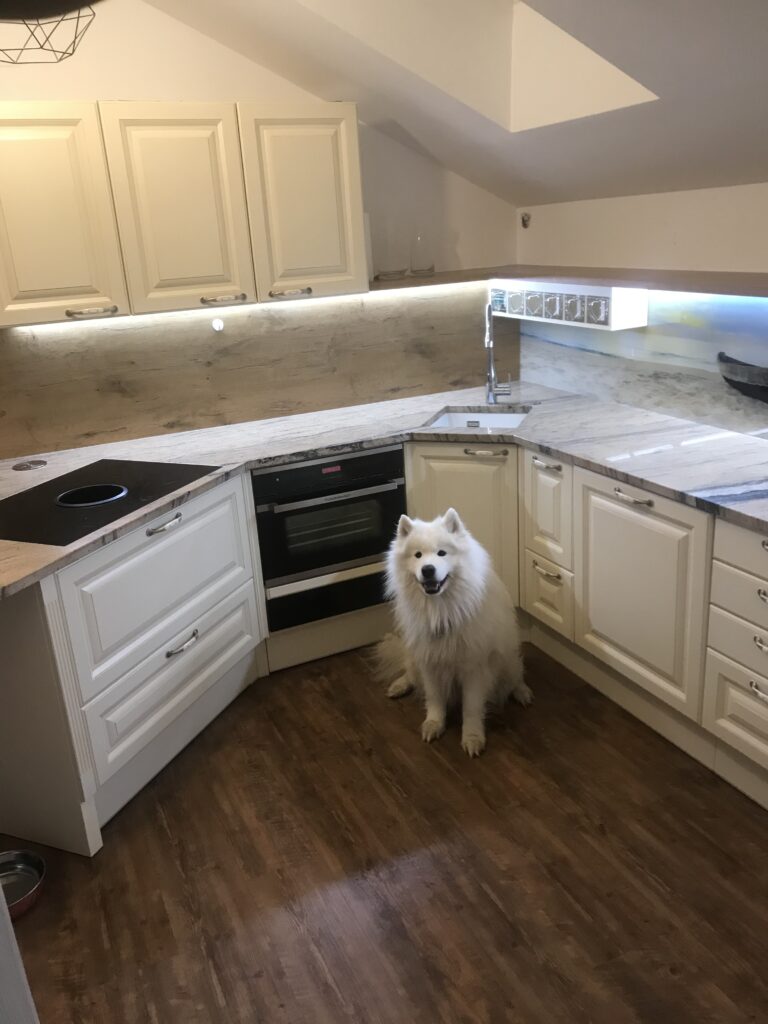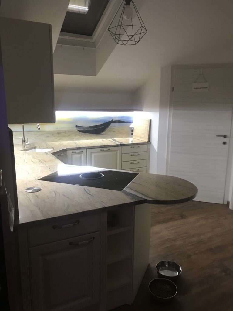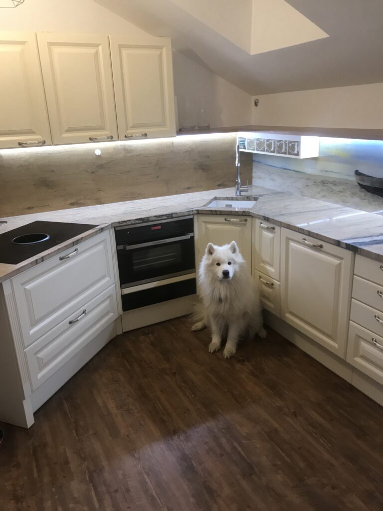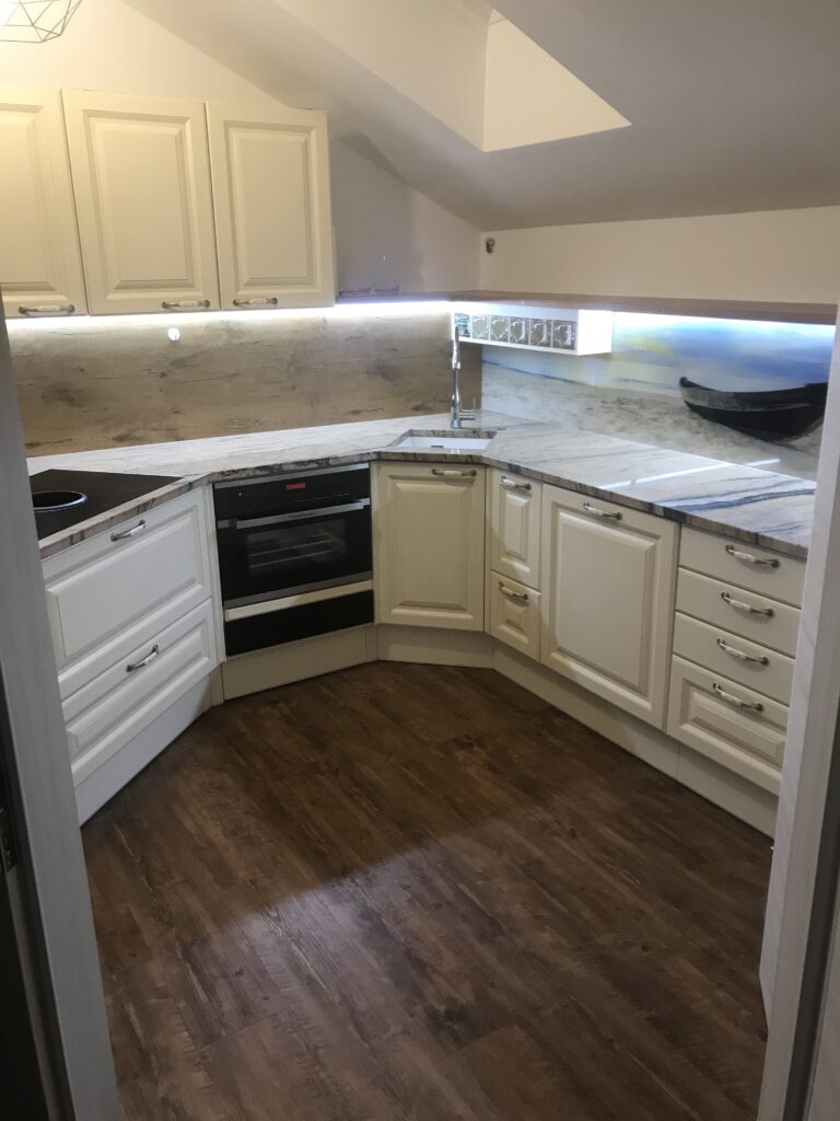 Wunderschöne Referenzküche im klassischen Landhausstil geht nie aus der Mode. DAN-Modell Landhaus in der Farbe Burguesa Eiche.
