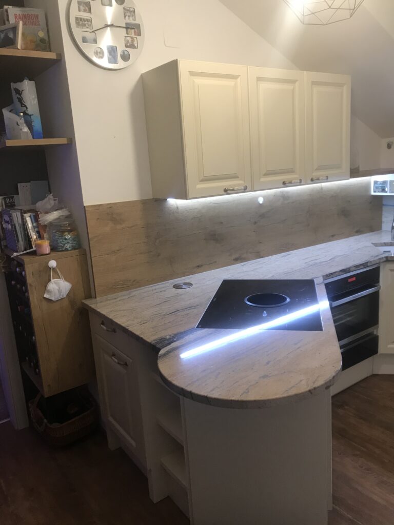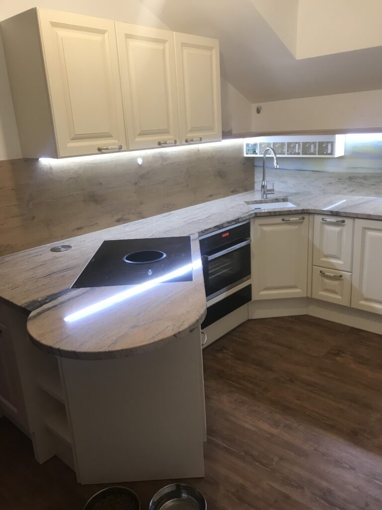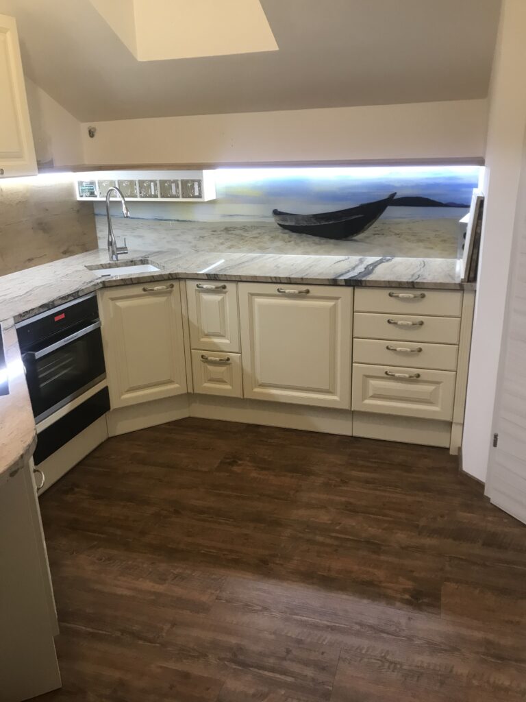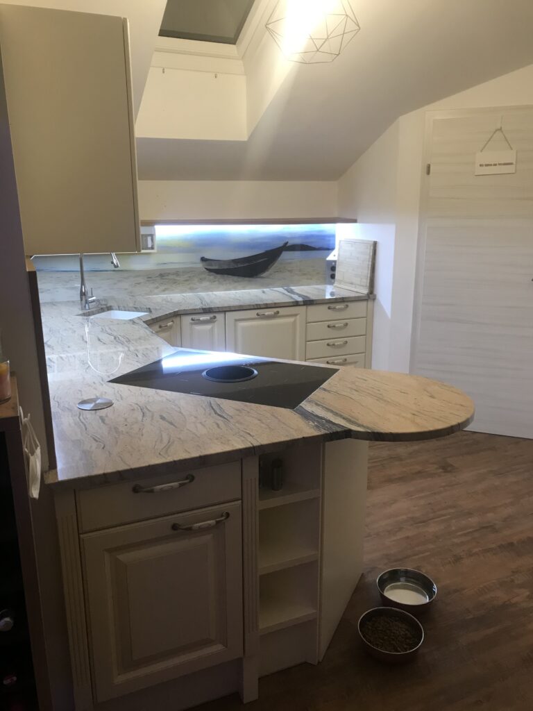 Wunderschöne Referenzküche im klassischen Landhausstil geht nie aus der Mode. DAN-Modell Landhaus in der Farbe Burguesa Eiche.