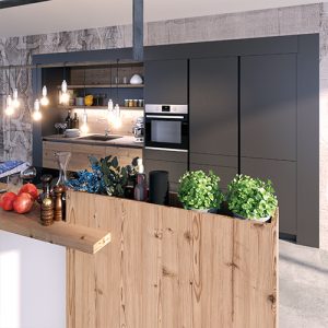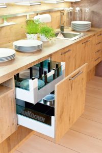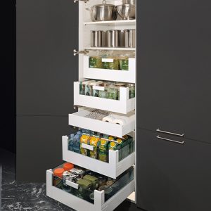 Jede DAN Küche ist bis ins Detail perfekt durchdacht. Funktional, ergonomisch und immer darauf bedacht, Ihnen das Leben und Arbeiten leichter und bequemer zu machen. So beinhalten die cleveren Ausstattungslösungen unter anderem praktische Vorratsauszugsschränke oder Apothekerschränke und Eckschränke, die selbst verborgensten Stauraum sinnvoll nützen. So ist alles stets übersichtlich und griffbereit, aber trotzdem gut verstaut!